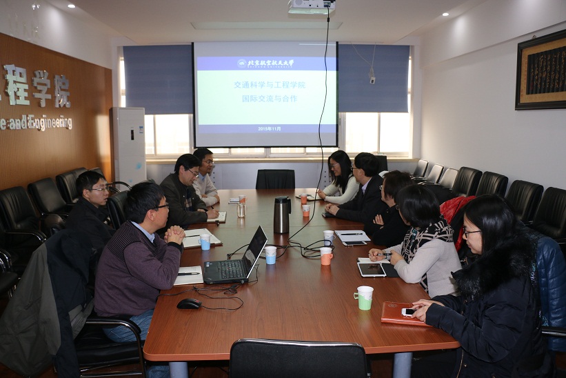 交通学院领导班子、土木和交通国际化实验班负责人、外事秘书等参加了调研会。会上负责外事工作的鲁光泉副院长全面介绍了我院5年来国际化工作的总体情况、开展的特色外事活动等。