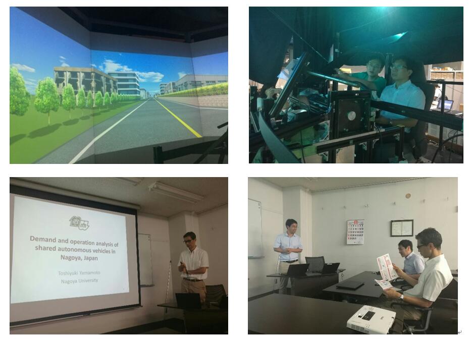 在大口敬教授、井料美帆副教授的带领下,北航交通运输系教师参观了东京大学先进ITS研究中心,详细了解了该中心在车联网、大数据方面的主要研究方向和学术成果,体验了东京大学自主研发的驾驶仿真模拟器,鲁光泉教授、余贵珍副教授就此与研发团队进行了深入交流,为将来在北航进一步开展车联网、车路协同方面的研究及产学研合作奠定了基础。此外,北航交通运输系教师还参观了名古屋大学自行车租赁、Personal Mobility等设施装置。