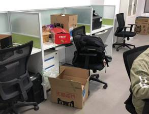 西配楼605 堆放杂物,工位桌面物品杂乱