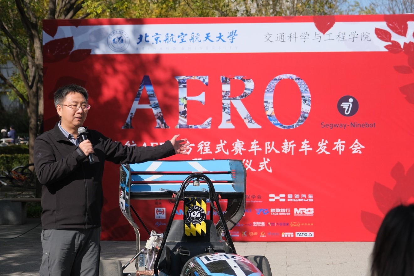 暑往寒来,又是一年金秋时节;天高云淡,AERO车队剑指襄阳。11月2日,北航AERO方程式赛车队在沙河校区举办了2020赛季新车发布会暨出征仪式。出席此次发布会的嘉宾有校团委书记庄岩老师、教务处曲越老师、交通学院党委书记吴江浩老师、院长杨世春老师。