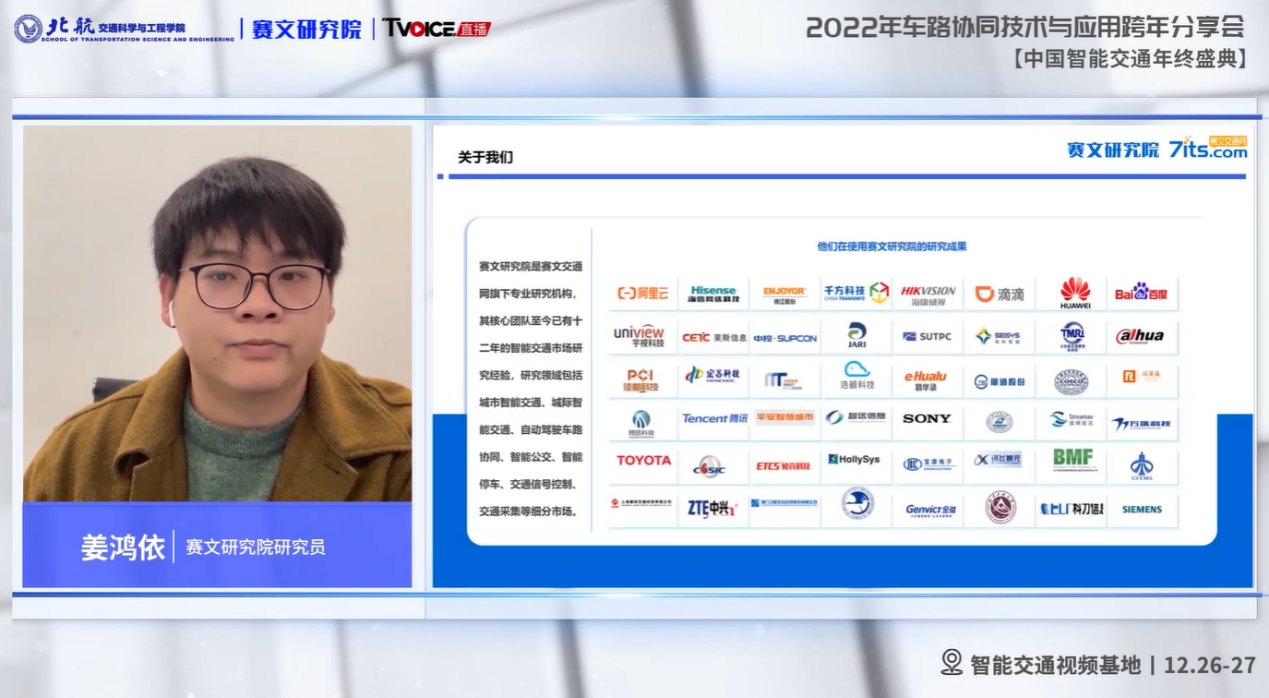 12月26日,由赛文研究院主办的2022中国智能交通行业年度盛典盛大开幕。本届盛典为期两天,内容涵盖智慧交运、智慧交管、智慧高速、车路协同、智慧停车等多项专业领域。盛典汇聚了知名专家学者、企业决策者和行业领军人物共计100多位重磅嘉宾,通过纯线上模式,全程共计14场论坛,全网直播有10000+人在线观看。