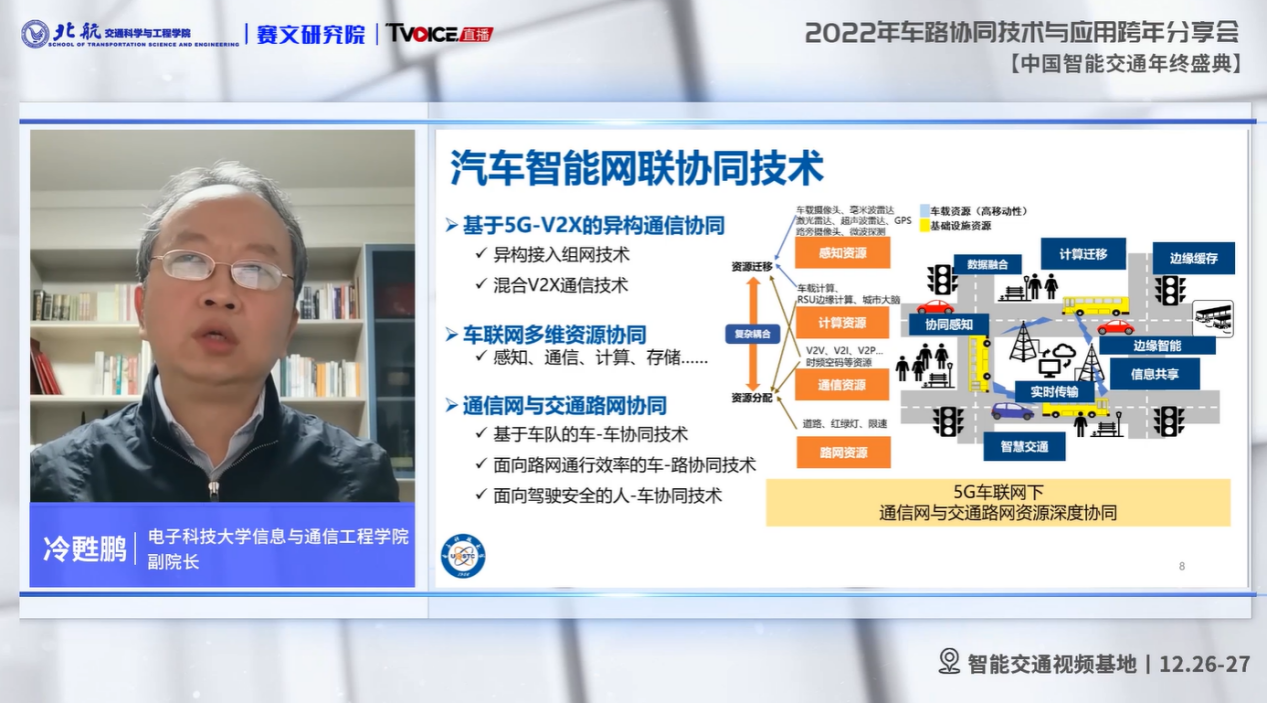 电子科技大学信息与通信工程学院冷甦鹏书记分享了《面向自动驾驶的汽车智能网联与资源协同技术》的精彩报告。报告从研究角度,对基于5G-V2X的异构通信协同,车联网多维资源协同,通信网与交通路网协同等车路协同关键技术进行了成果分享。
