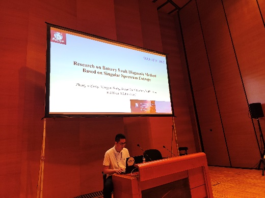 张正杰同学分享了电池故障诊断方面的研究:“Research on Battery Fault Diagnosis Method Based on Singular Spectrum Entropy”。基于熵的理论设计了锂离子动力电池的热失控多级预警策略。以实车数据为信息确定了用于分析计算的安全要素参数,首先对信息熵的分析方法进行了改进,并定义了信息熵预警系数来量化车辆热失控的风险,同时基于该量化指标将热失控的风险等级设置为三级;其次将奇异谱分析引入锂离子动力电池单体热失控的风险判断中,通过比较同一动力电池系统中各单体电池奇异谱熵值的大小来评估热失控可能性的大小,验证结果表明基于奇异谱熵的热失控预警方法能够有效实现热失控风险单体的快速定位。