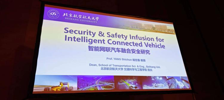 会上,首先由杨世春教授进行开场视频致辞,并就团队近期在智能网联汽车安全领域的最新研究进展,做了“智能网联汽车融合安全研究”远程报告。