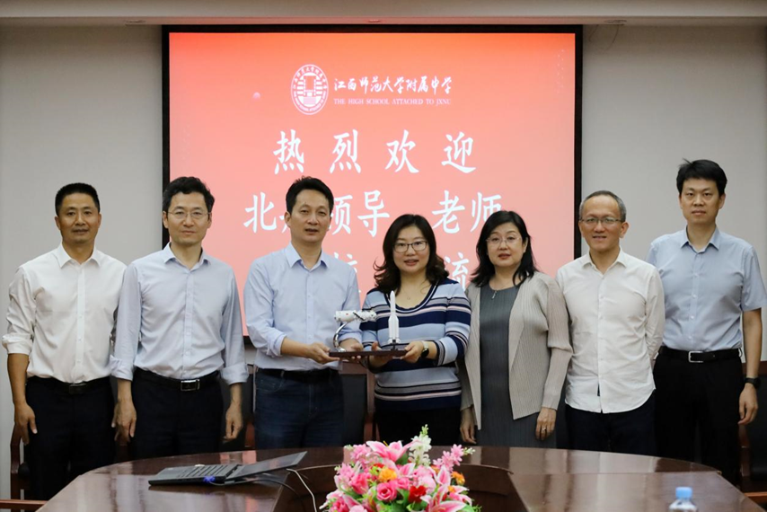 11月2日,邓怡、韩慧瑜带队前往江西师大附中、江科附中开展招生宣传。在江西师大附中,招生组一行向江西师大附中即将到来的八十周年校庆表示祝贺,两校围绕人才培养、大中衔接、国优计划等进行了深度交流,就科创课程、实验室共建等达成初步合作意向,并由黄瑞勇教授为江西师大附中百余名学子做《从学业到就业,如何选择中国大学》讲座。在江科附中,韩慧瑜、黄瑞勇与校长、年级主任等座谈交流,韩慧瑜介绍了北航的历史沿革和学科发展情况等,对江科附中近年来为北航输送的优质生源表示感谢。黄瑞勇用高校大数据为江科附中领导介绍了北航的优势并获得高度认可。随后招生组一行前往江西省教育考试院与院长徐峰等就招考改革、大中衔接、拔尖人才培养等进行了充分研讨和交流。