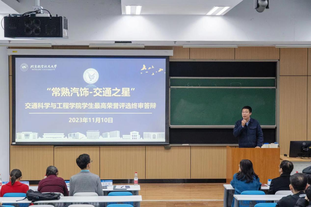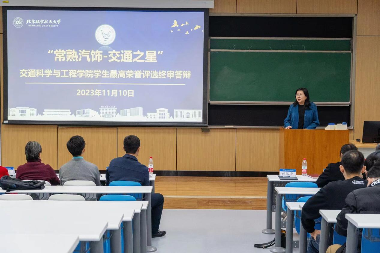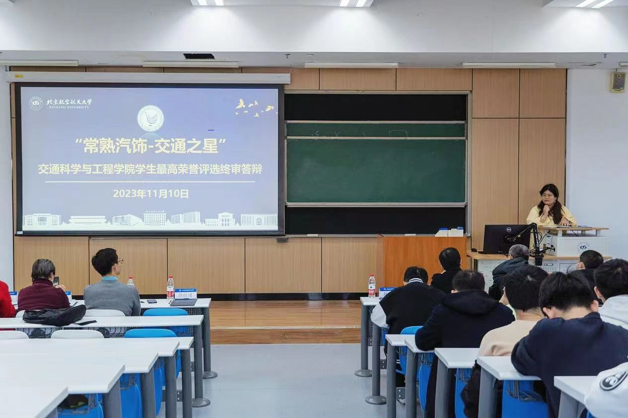 11月10日下午,交通科学与工程学院“交通之星”评选终审答辩会在沙河校区J3-411举行。学院党委书记韩慧瑜、党委副书记郭祖博,教师代表潘强、单颖春、林庆峰、谭力豪,班主任代表刘新华、杜锋,以及交通学院和航空航天类书院专职辅导员出席活动并担任评委,来自交通学院的本、研共150余名学生到场观看。答辩会由学院2023级硕士研究生辅导员朱明月主持。