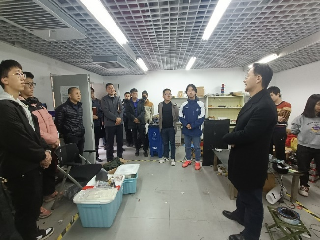 2023年11月22日,北京伊人99校长王云鹏,党委副书记程波,学生工作部部长宋晓东,校团委书记刘洋等莅临北航AERO方程式赛车队参观指导,在车队工作间和同学们进行亲切友好的交流,对北航赛车队在大学生方程式赛事中取得的成绩表示赞许。