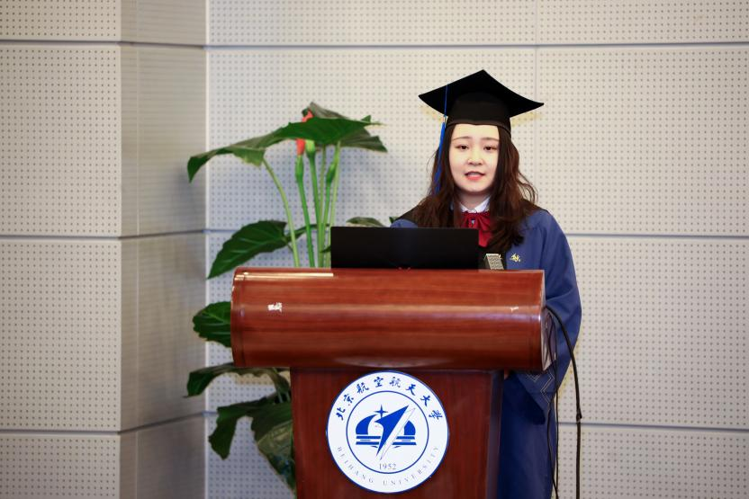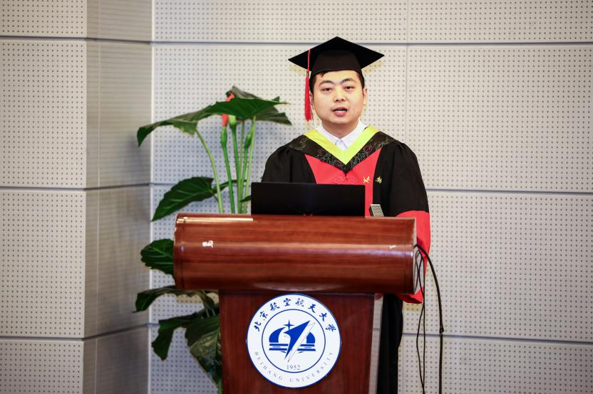 博士毕业生代表梅鹏同学回望在北航五年的求学旅程,良好的学习环境与丰富的科研资源培养了同学们扎实的研究能力和坚韧的品质,并逐渐感悟到做人、做事、做学问的真谛。他激励所有毕业生为未来交通强国事业的发展贡献青年力量,成为敢为人先、勇攀高峰的交通人!
