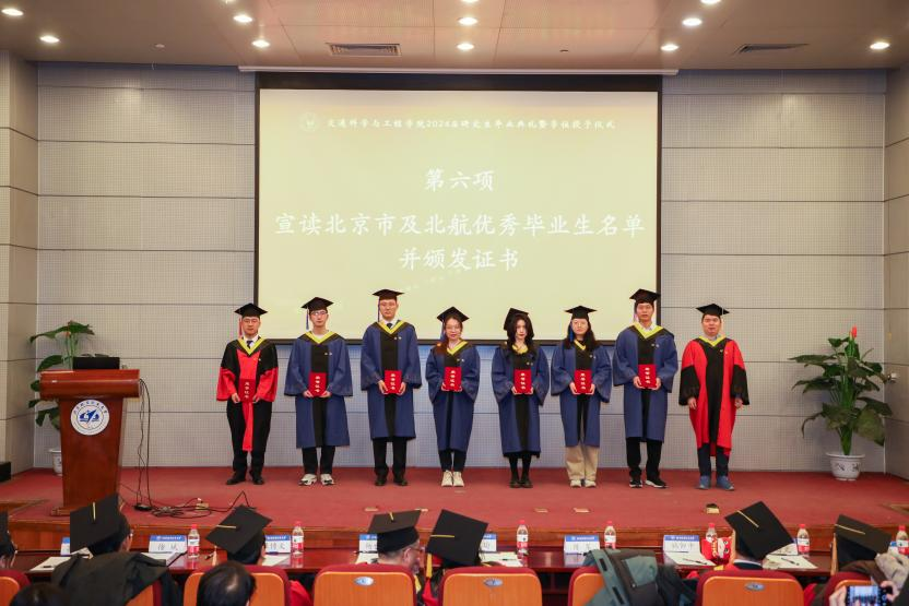 副院长陈军宣读2024届北京市及北航优秀毕业生获奖名单并为获奖毕业生代表颁发证书。