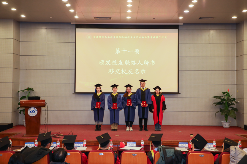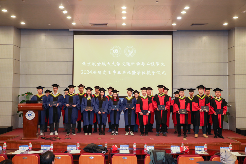 1月8日下午,交通科学与工程学院2024届研究生毕业典礼暨学位授予仪式在沙河校区四号实验楼205隆重举行。交通学院党委书记韩慧瑜,院长杨世春,副院长陈军、杜博文,学位评定委员会委员姚仰平、徐斌、孙凌玉、张曙光、唐铁桥、李峰、何田,学院各系领导王建、王岩、陈海兵、谭玉敏、周建山,专兼职辅导员,59名研究生毕业生共同出席典礼,部分毕业生亲友也来到现场共同见证这一重要时刻。典礼仪式由学院党委副书记郭祖博主持。