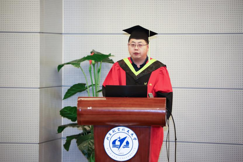 今年刚好是王建老师担任研究生导师第20年,他代表全体导师向毕业生们表示最热烈的祝贺和最美好的祝愿,并用汽车作比喻,希望每位毕业生未来都能成长为一台“性能卓越的汽车”,“方向”要稳,坚定理想信念、矢志奋斗不渝,“动力”要强,时刻以服务祖国建设发展需求为己任,同时更要坚持终身学习,牢记母校精神,传承和发扬北航校风,不断追求卓越,谱写辉煌未来。