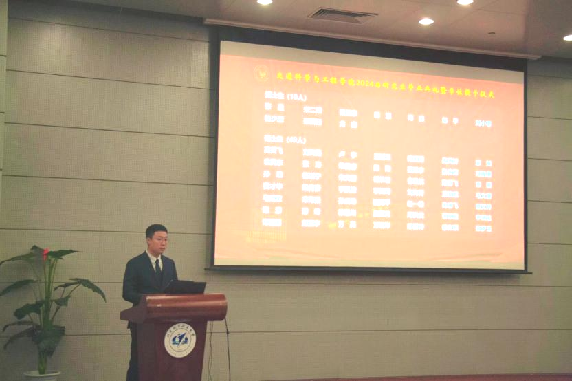 党委副书记郭祖博宣读交通学院2024年春季研究生毕业生名单,向各位毕业生表示衷心的祝贺。