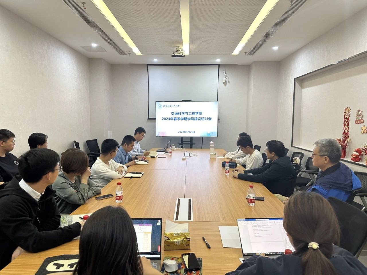 为进一步落实学校2024年人才培养大会精神,全面加强学院学风建设,提升育人实效,4月24日下午,交通科学与工程学院组织召开2024年春季学期学风建设研讨会。学院本科教学副院长陈军、研究生教学副院长于滨、党委副书记郭祖博,本科生班主任、研究生导师代表,本、研教务秘书,专兼职辅导员及各学段学生代表参会。会议由郭祖博主持。