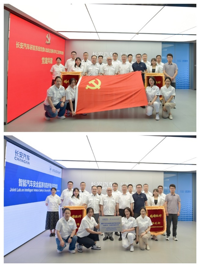 双方签署党建共建协议,并举行智能汽车安全监测与防护联合实验室揭牌仪式。面向未来,双方将以党建为引领,依托联合实验室平台进一步深化产学研合作,推动智能汽车领域的技术创新与成果转化。杨世春、詹樟松还共同为“揭榜挂帅”党员授旗。