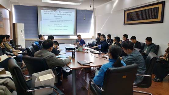 2018年10月18日,王旭教授在我院501会议室做了题为“Vibration Energy HarvestingTheory and Method of Vehicle Suspension System (Part II)”的学术报告。王旭教授介绍了在汽车振动能量回收方面的相关研究,以及直接、间接能量回收装置的设计与应用。他还介绍了相关的应用背景与未解决问题,内容丰富、很具启发性。