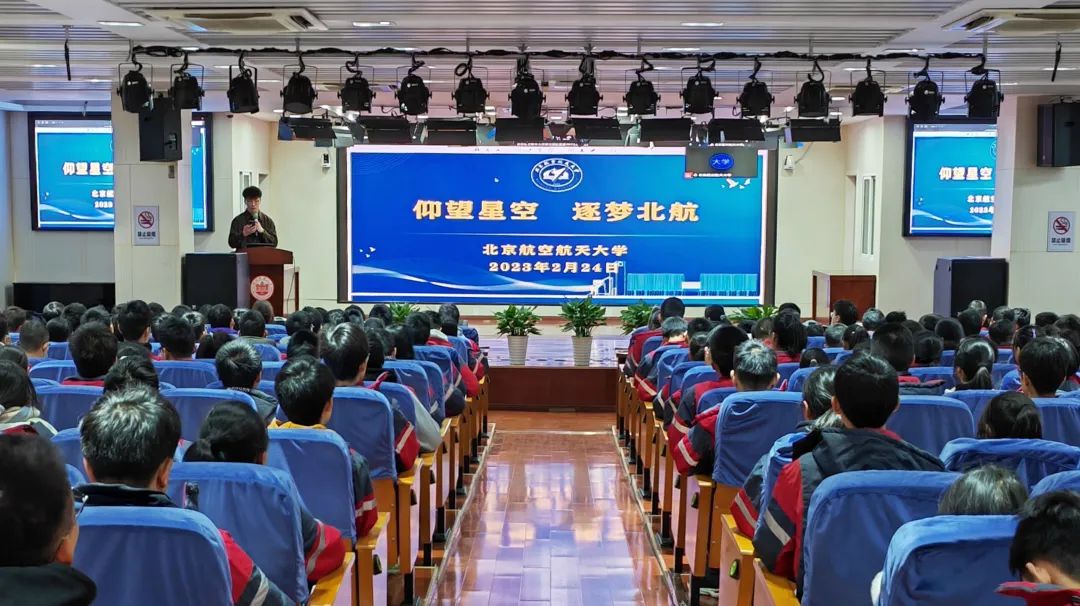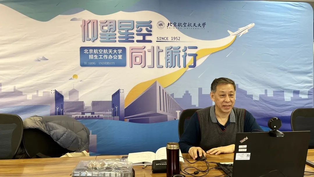 2月24日下午,招生组走进南昌市新建区第二中学,与中学相关领导进行座谈并举行“优质生源基地”授牌仪式。仪式结束后,招生组连线北航招生办公室直播间,陈志英教授以“蕴含科学定律的飞行器设计”为主题,为新建二中的同学们带来一场别开生面的线上科普讲座,深入浅出地介绍了航空航天相关科学知识,受到同学们的一致好评,现场掌声如潮。